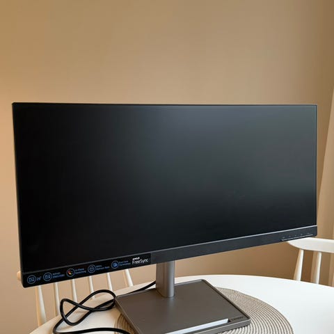 Lenovo 28 tuuman näyttö. Näyttö on musta, ja siinä on tyylikäs kolmijalkainen jalusta. Sopii tietokoneen lisänäyttöksi tai muuhun visuaaliseen työskentelyyn esim pelaamiseen mukana myös näppäimistö