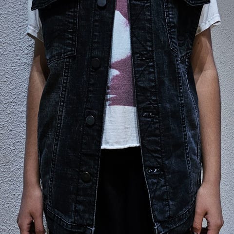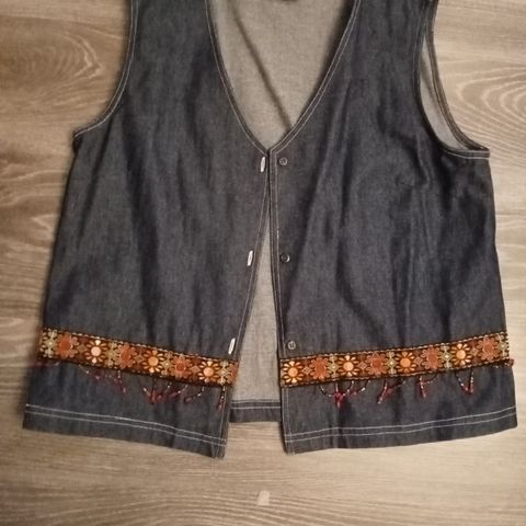 Superhieno vaaleansininen farkkuliivi koristeellisilla metallinapeilla ja hopeanyörityksellä, antaa asulle heti boheemin tai rock-henkisen ilmeen! Vuorattu raidoitetulla kankaalla, laadukas ja hyvässä kunnossa.