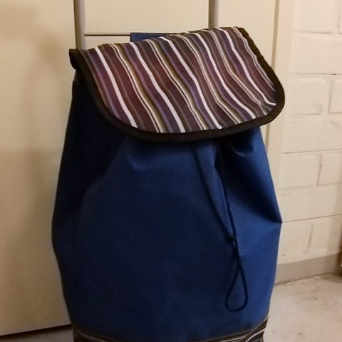 Myynnissä kuvan mukainen vedettävän ostoskärryn runko. Korkeus n. 98 cm, leveys n. 33,5 cm.