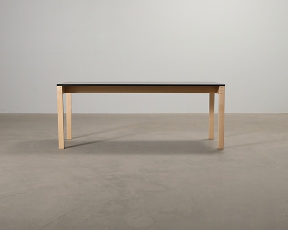 Sofacompanyn Allie on klassinen ruokapöytä yksinkertaisen tyylikkäällä muotokielellä. Pöydän ulospäin kääntyvät jalat ovat valmistettu massiivitammesta ja pöytälevy on laminaattia.
