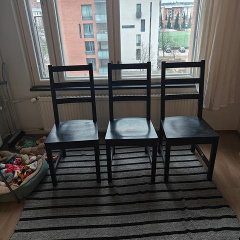 6kpl jotenkin kasassa pysyviä keittiön tuoleja. Paria niistä vois huoltaa.