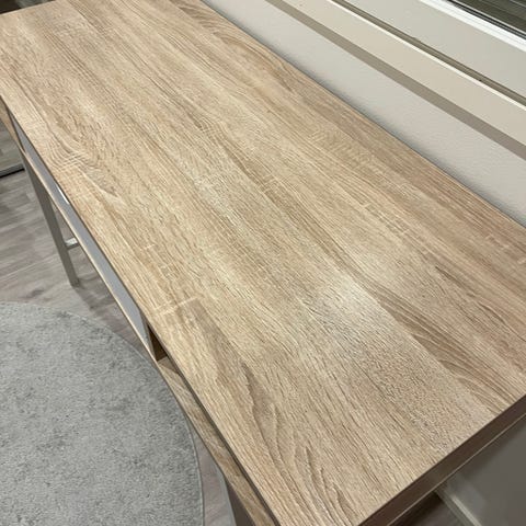 Uuden tilalta pois ikean työpöytä 120cm levee pinnassa vähän kynsien teko jälkiä ei yritetty poistaa.