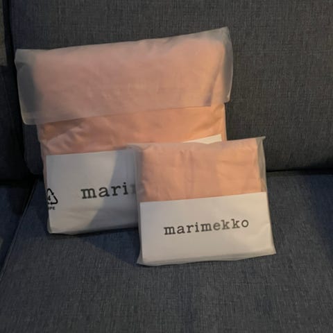Uusi Marimekon Fandango pussilakana ja tyynyliina. Vanhempaa tuotantoa.