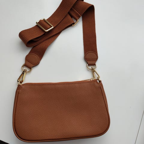 Nahkainen käyttämätön olkahihnallinen salkku. Laukussa on säädettävä olkahihna ja kantokahva. Etuosassa kaksi taskua, joissa solkilukot. Laukun sisällä useita osastoja ja taskuja, mukaan lukien kynätaskut ja yksi vetoketjullinen tasku. Sopii mm. asiakirjojen kuljettamiseen. Koko 40cm x 32 cm.