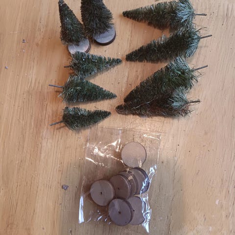 8 kpl hopeisia miniatyyrikuusia + jalat, korkeus 5x 5,5 cm ja 3x 4,5 cm.