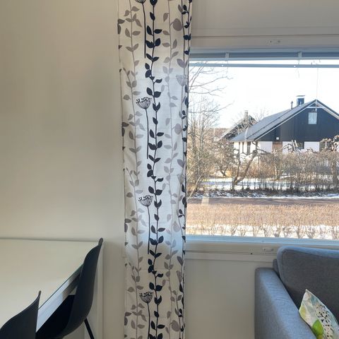 Yksivärinen valmisverho, vaalea, 100% polyesteri, siisti, ehjä, hyvässä kunnossa . Ompelu ylhäällä ja alhaalla