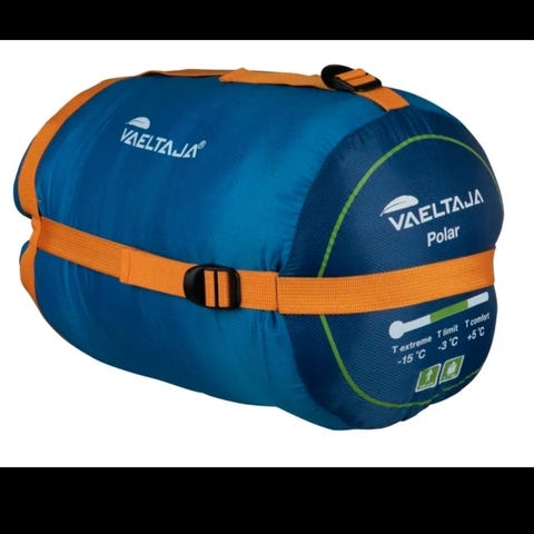 Myydään kerran käytetty Vaeltaja Polar -makuupussi, Tokmannista ostettu.