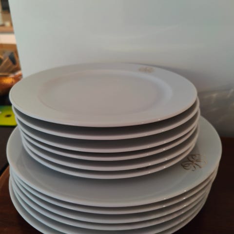Hyväkuntoinen lautasastiasto, leipälautaset (19cm halkasija) ja ruokalautaset ( 20cm halkasija)