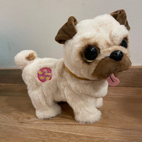 Tytär myy lemmikittömästä allergiataloudesta uutena ostamansa Pets Alive Pooping puppies mopsin. Aivan ihana!