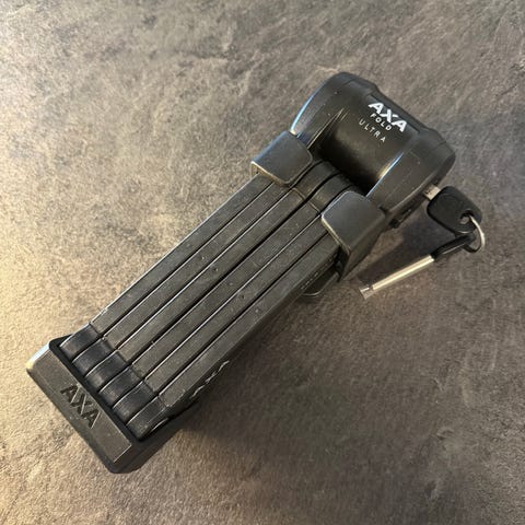 Joustavat liitokset tekevät lukosta helppokäyttöisen. Lukko on valmistettu teräksestä ja siinä on pehmeä pinnoite, joka estää pyörän rungon naarmuuntumisen. AXA Fold -lukossa on symmetrinen avain, mikä on erityisen kätevää lukkoa avattaessa ja suljettaessa, erityisesti pimeässä!