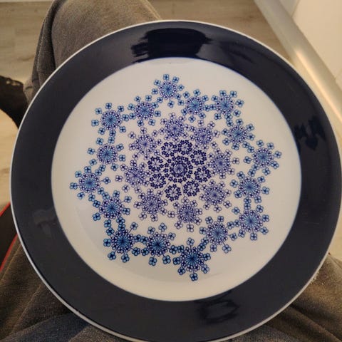 Arabia keraaminen lautanen, sinivalkoinen kukkakuviointi. Lautanen soveltuu astiastoksi ja tarjoiluun.