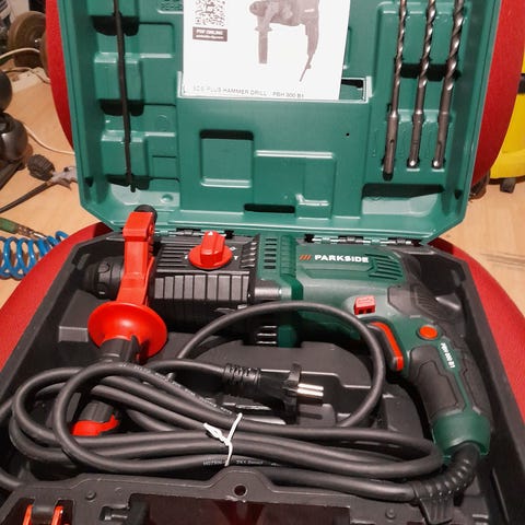Iskuporavasara 750W Parkside, istukka 13mm hiukan maalijälkiä pinnassa, ei haittaa toimintoa.
