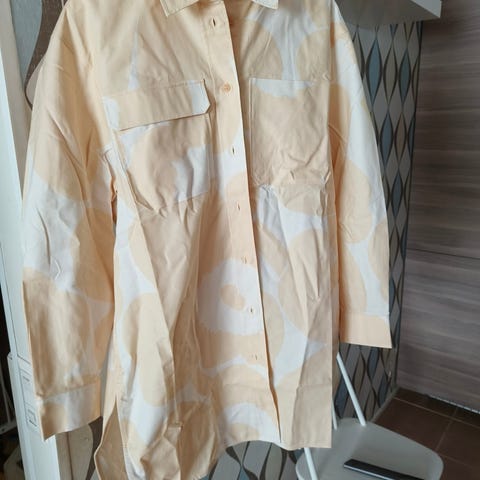 Myyntiin siisti ja myyntiä varten pesty mu-va Marimekon paita. Olka-helma 59cm, kainalo-kainalo 49cm.
