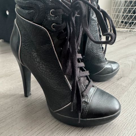 Myydään upeat Guess nilkkurit/maiharit, koko 37! Kuvissa näkyy kun pinta hieman hilseilee, näkyy vain läheltä! Sekä toisesta vetoketjun vedin poikki!