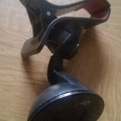 Puhelinteline esim. auton kojelautaan. Imukuppikiinnitys tasaiseen alustaan. Telineen "leukojen" väliin mahtuu max n. 75mm leveä puhelin.