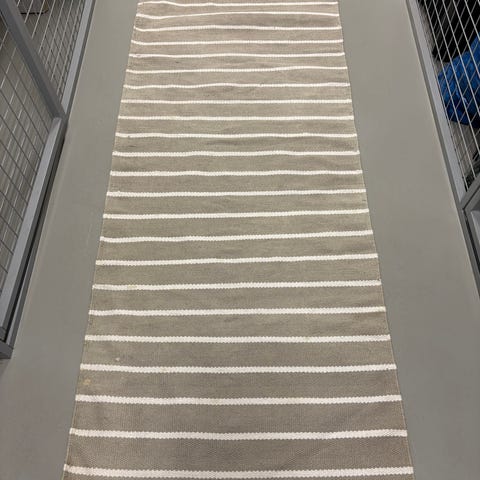 Uusi vasta pesty matto, puuvillaa, joka ei sitten kestänytkään konepesua. En raaskisi heittää roskiin tuon sutun takia.