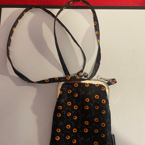 Vähällä käytöllä ollut hand made siirtolapuutarha kankaasta tehty pieni kangas laukku. Mitat leveys 17cm korkeus 22cm.