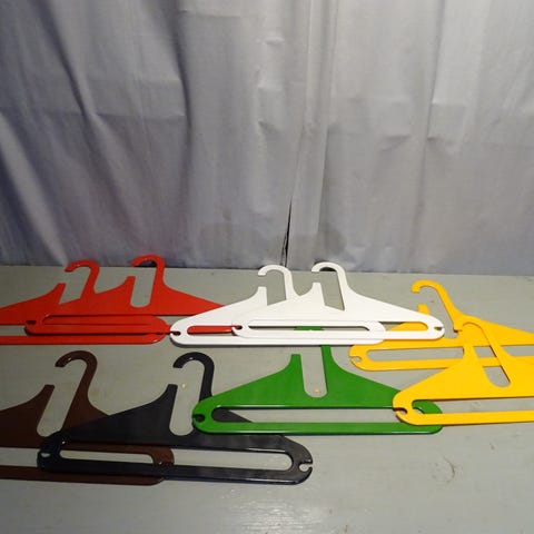 Vintage henkarit/vaateripustimet housupuulla, muovia, punaiset 2 kpl. Leveys 1 cm. Ehjät ja siistit. Kunto kuin uusi. Toisella henkarilla lukee 17639 m.k. Made in Finland by Karhumuovi. Voi ostaa myös yksittäin 10e/kpl. Hinta yhteensä 15 euroa.