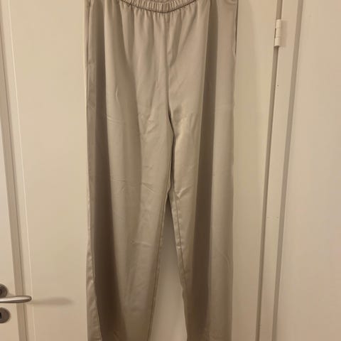 Uudet ja käyttämättömät ylelliset satiinihousut himmeän kerman-/kullanhohtoisina ja hienolaatuisina merkiltä Beaumont, Amsterdam. Laput irroittamatta. Leveä ja suora lahje, vyötärölaskokset. Lapussa S-koko mutta mitat (kts alempana ja kuva) vastaavat yleisten mittataulukoiden mukaan M-kokoa. Materiaali sopii niin kesällä kuin talvellakin. Hinta alunperin uutena 149 eur, ostettu Stockmannilta 110 eurolla 2025 syksynä.