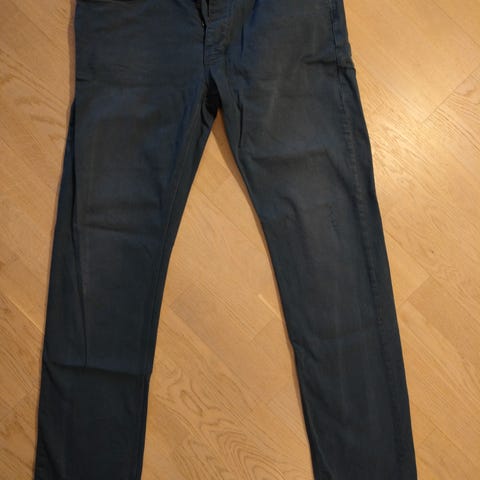 Kerran jalassa pidetty ja pesty. Oli liian väljä vyötäröstä (verrokkina käytän 33 tuuman farkkuja). Nauhakiristykset lahkeissa ja vyötärössä. Miellyttävää ohutta puuvillaa.