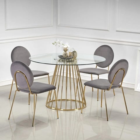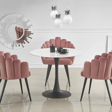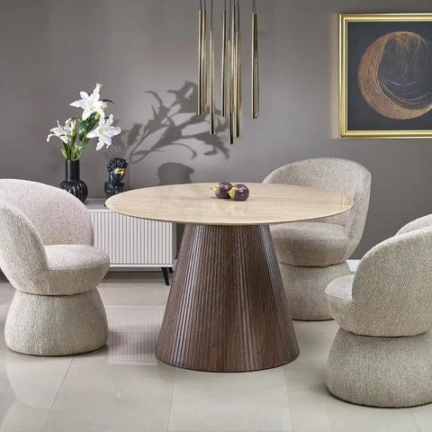 Camilla-ruokapöytä kullanvärisellä jalalla on täydellinen valinta niille, jotka arvostavat sekä käytännöllisyyttä että designia. Sen elegantti ja moderni ilme saa aikaan harmonisen yhdistelmän tilaan kuin tilaan.