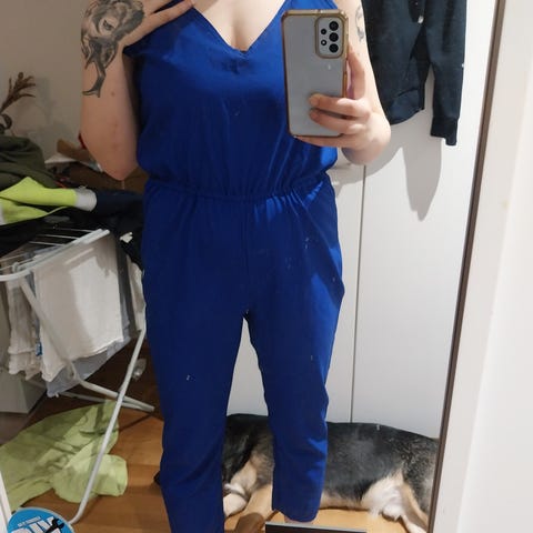 Myydään housuhaalari. Koko S. Edessä ja selässä verkkoa. Selässä vetoketju.