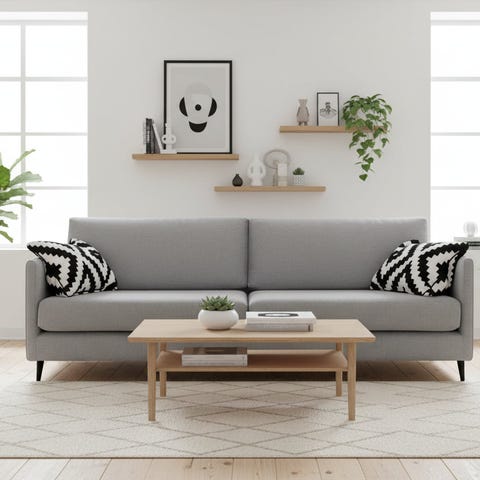 Eleanor-sohvan kiinteät tyynyt takaavat siistin ja huolitellun ulkonäön, samalla tarjoten tukea istuessa. Sen korkealaatuiset materiaalit ja vankka rakenne takaavat kestävyyden ja pitkäikäisyyden, joten voit nauttia tästä sohvasta pitkään