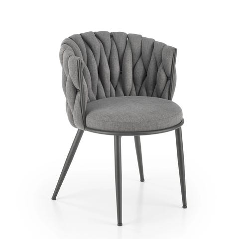 Olivia tuolin selkänoja on kauniisti paksupunottua kangasta, mikä luo eleganttia ilmettä ja tarjoaa mukavuutta ruokailuhetkiin.