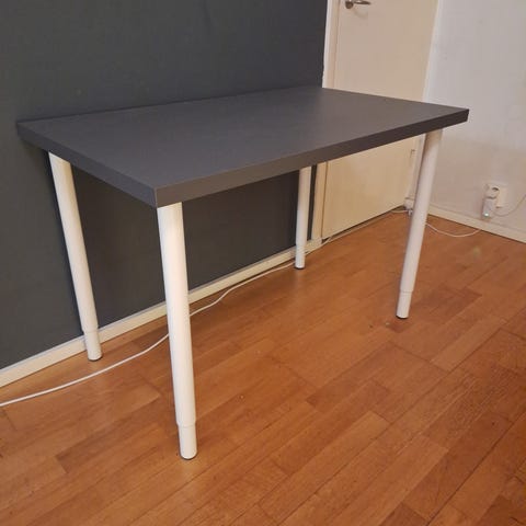 Hyväkuntoinen pöytä vaikkapa lapsen huoneeseen. Ikea Linnmon pöytälevy (mustanruskea / musta) ja Ikea Adils jalat (mustat).