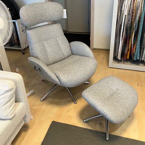 mutta on jämäkän tuntuinen. Mallin jalkarahin ja selkänojan kallistus aukeavat käsinojien sisäpuolelle sijoitetulla