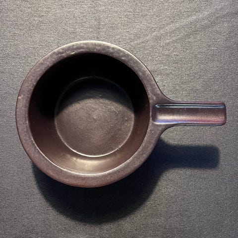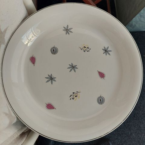 Arabian tummanruskea matalareunainen paistivati. Mitat 41x30cm. Suunnittelija Ulla Procopé, valmistettu vuosina 1958-1964. Pinnassa kulumaa, mutta toimii edelleen.