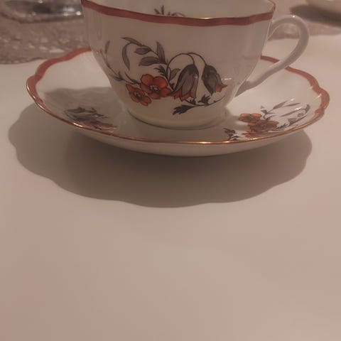 Kuusi kappaletta vanhoja, pieniä kahvikuppeja lautasineen, Arabian tuotantoa. Läpikuultavaa riisiposliinia. Kunto hyvä. Lisäkuvia järjestyy pyydettäessä ja sopii tulla katsomaan. 🙂