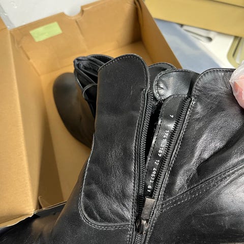 Naisten talvikengät mustaa nahkaa, koko 40. Varustettu vetoketjulla sivussa helpottamaan pukemista.