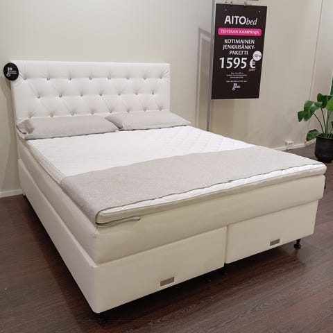 Valitse sängyn koko ja lisävarusteet: Amore Lux Jenkkisänky 160x200 cm, Amore Lux Jenkkisänky 180x200 cm, Amore Lux Jenkkisänky 160x200 cm ja sängynpääty, Amore Lux Jenkkisänky 180x200 cm ja sängynpääty; Valitse jousituksen kovuus: Medium jousitus kovuus koko sänky, Hard jousitus kovuus koko sänky, Medium/Hard toinen puoli sängystä Medium ja toinen puoli Hard kovuus