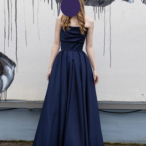 Zazabella ilta- tai juhlapuku tumman sininen väriltään, koko XXS. Puvussa on nauha olkaimet ja takana korsettimainen nauhoitus. Materiaali 100% polyesteria. Laadukas, runsas levenevä helma. Sopii naisten käyttöön juhla- ja iltatilaisuuksiin ja vanhojen tansseihin. Alushame ja koristevyö kuuluvat kokonaisuuteen.
