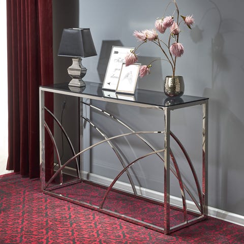 Kona 4 Design konsolipöydässä yhdistyy rohkea muotoilu sekä kestävä rakenne. Väriltään savunharmaa lasi ja kiiltävä kromiteräs luovat modernin ja tyylikkään ilmeen. Tämä tyylikäs pöytä sopii hyvin eteiseen, olohuoneeseen tai vaikka makuuhuoneen sisustukseen.