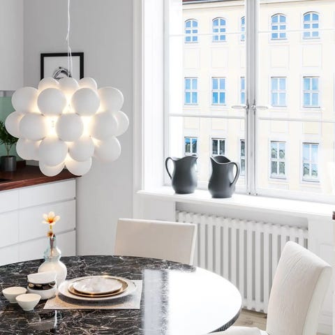 Gross Bar -riippuvalaisin yhdistää metallisen rungon ja hurmaavat lasikuulat, mikä tekee siitä täydellisen lisän moderniin, skandinaaviseen tai jopa klassiseen sisustukseen. Sen elegantti muotoilu ja kiiltävä pinta luovat tilaan ainutlaatuisen tunnelman, joka varmasti herättää huomiota vieraidesi keskuudessa.