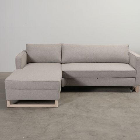 Nordic divaani vuodesohvassa on reilun kokoinen säilytystila divaaniosan alla, johon mahtuvat peitot, tyynyt ja muut tarpeelliset tavarat.