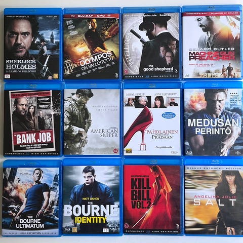 Hyväkuntoisia ja jopa avaamattomia elokuvia. Kaikki levyt testattu toimiviksi, useimmat ovat täysin narrmuttomia. Kaikki yhteishintaan 10€
