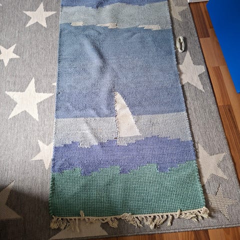 Myydään uusi mustavalkoinen räsymatto. Itselle hutiostos.Maton leveys 60cm,pituus 90 cm(mitattu ilman hapsuja). Vain nouto ja tasaraha käteisenä 5e.