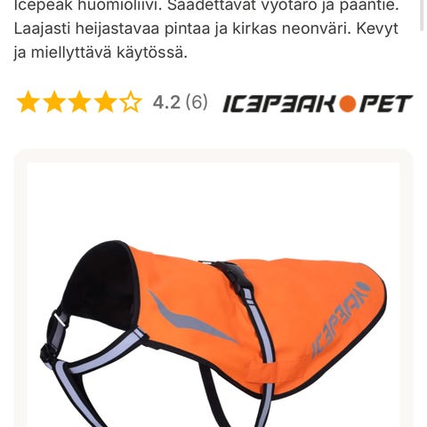 Myydään oranssi upouusi koiran Kivalo-merkkinen heijastinliivi. S-koko oli harmillisesti meidän tessulle liian pieni.