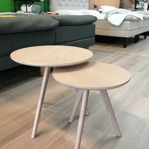 Suuremman pöydän rohkea leveys ja korkeus tekevät siitä täydellisen keskipisteen olohuoneeseesi. Pienemmän pöydän kompakti koko ja muoto tekevät siitä monikäyttöisen sivupöydän tai vaikka kätevän lisäpöydän vieraiden tarjoiluun.