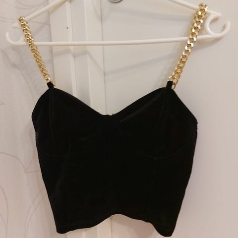 Toppi on valmistettu sileästä materiaalista ja siinä on ketjuhihnat.