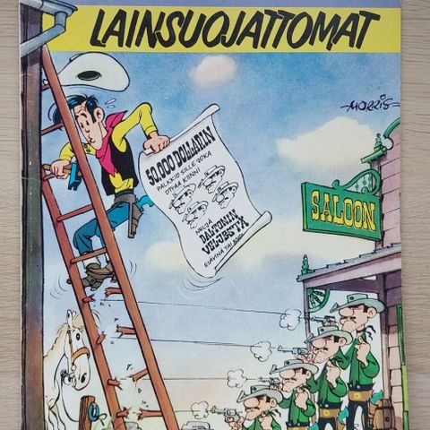 Lucky Luke albumi Sukuvihaa villissä lännessä vuodelta 1978, 1. painos. ISBN 951-1-04776-0. Kunto tyydyttävä, kaikki sivut tallella, selän alalaidasta noin 2 cm korjattu korjattu teipillä, kansissa kulumaa, kansi ja sivut hieman kupruiset kosteudesta, joitain läikkiä joissain sivuissa. Katsothan kuvat tarkkaan tarkistaaksesi kunnon. Hinta vain 9 euroa, edullinen. Kiva tapa saada lapsi lukemaan! Kiva lahjaidea! Toimitusehdot: NOUTO Helsingistä myyjän osoitteesta kuluitta. TORIDIILI: voit ottaa yksillä torikuluilla myös useamman sarjakuvan, KYSY ENNEN OSTOA. Katso muut sarjakuvat hakusanoilla ollin sarjakuvat.
