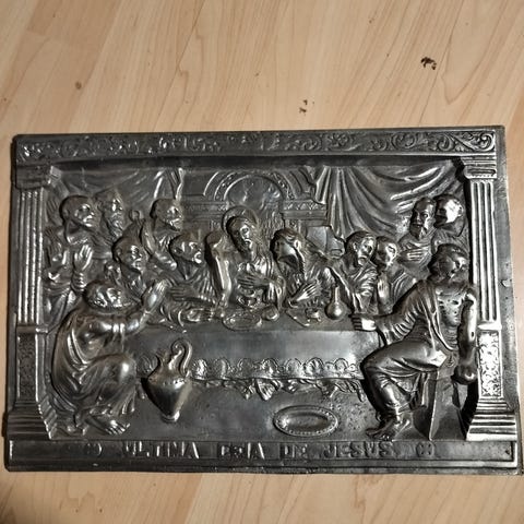 Metallinen taulu Jeesuksen viimeinen ehtoollinen