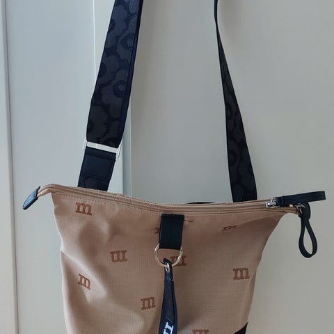Hyvässä kunnossa oleva laukku, tämä on se isompi malli, koko 35x35x20, kolme isoa taskua, keskitaskussa vetoketju.