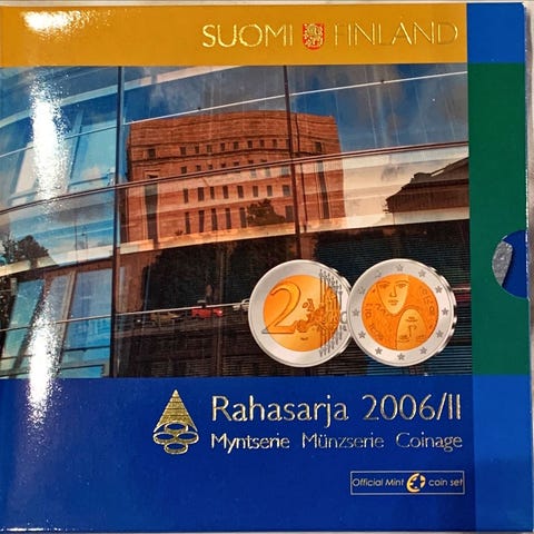 Vuoden 2006 kolikot ja 2 euron erikoisraha, joka lyötiin 100 v voimaan tulleen yleisen ja yhtäläisen äänioikeuden johdosta. Kulkee Jns-Varkaus-Pieksämäki.