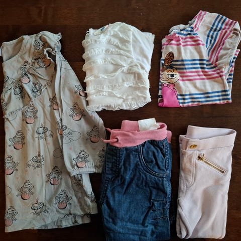 Hyvässä kunnossa olevat vaatteet. Yhdellä lapsella käytössä olleet, puhtaat ja ehjät vaatteet. Sopii noin 98-104 kokoiselle tytölle. Merkit mm. Lindex, Newbie, HM, Cubus. Savuton koti Keravalla. Pesty hajustettomalla pesuaineella. Postitus onnistuu. 20 e.