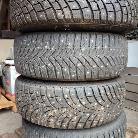 Kaksi kpl Maxxic Artic Trekker ja kaksi pinnattua. Oli Citroen C4 alla. Pintaa minimissään 7mm