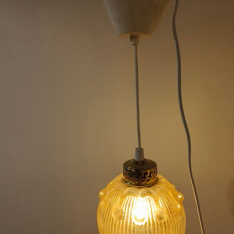 Hieno messinkirungolla varustettu kattokruunu myytävänä. Kuvut lasia ja kaikki ehjiä. Ei pistoketta. Toiminta testattu.